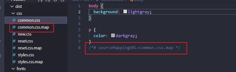 CSS๋ก ๋ณํ๋ ํ์ผ์ ๋ณด๋ฉด cssํ์ผ ์ธ์ mapํ์ผ์ด ์์ฑ๋ ๊ฒ์ ๋ณผ ์ ์์ต๋๋ค.