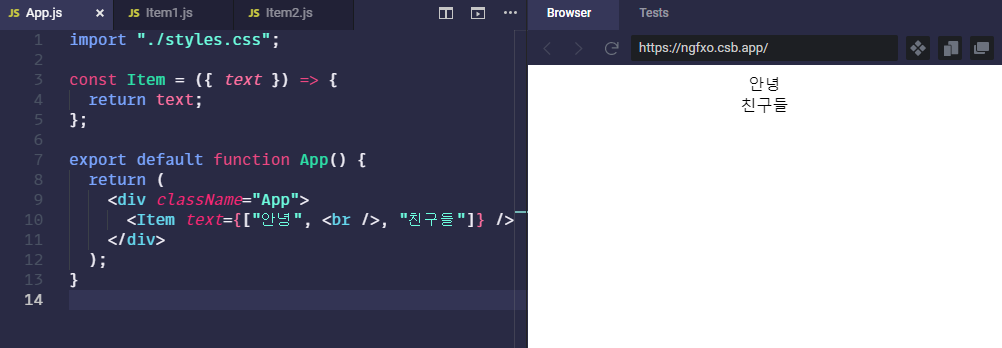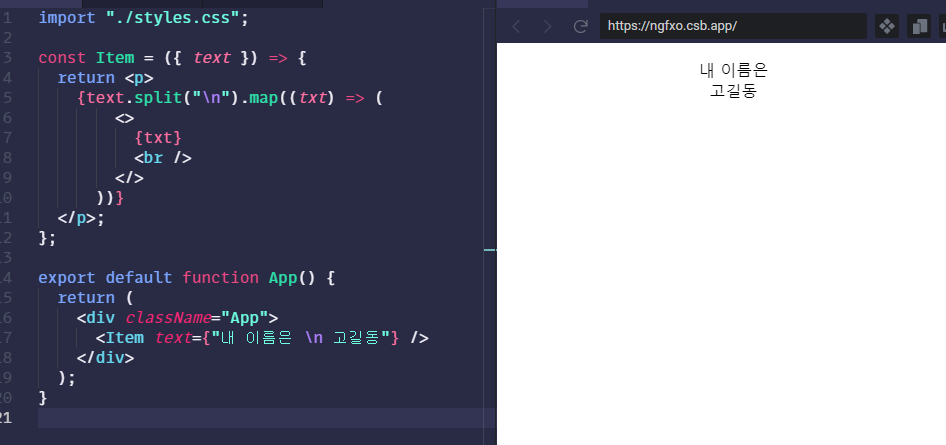 <Item text={"๋ด ์ด๋ฆ์ \n ๊ณ ๊ธธ๋"} />