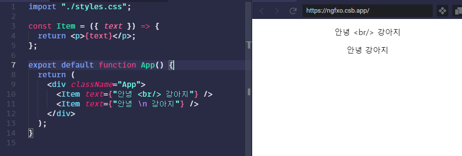 ๊ฐ๋ฐ์ ํ๋ค ๋ณด๋ฉด props๋ก ์ ๋ฌ๋ฐ์ ํ ์คํธ์ ์ค ๋ฐ๊ฟ์ ํด์ผ ํ๋ ๊ฒฝ์ฐ๊ฐ ์ข ์ข ์์ต๋๋ค.